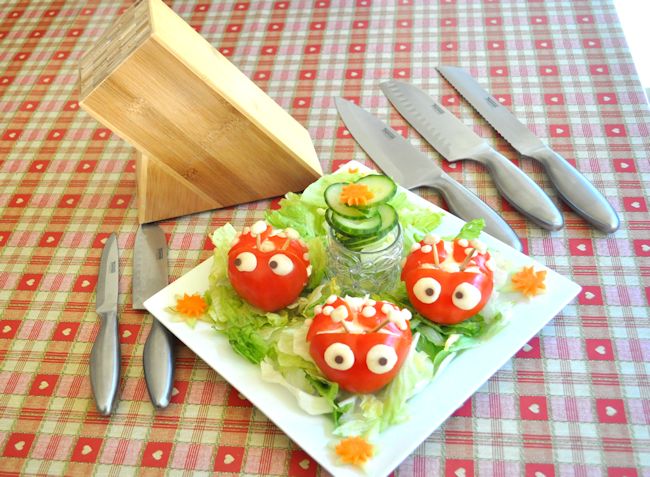 My ladybirds on a bed of lettuce with carrot and cucumber decorations.