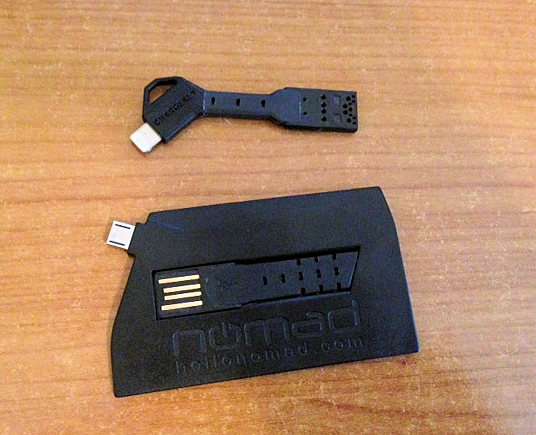 The key part fits onto my keyring and means that as long as I can get access to a USB port of a USB plug, I can charge anywhere without tangled cables.  The CHARGECARD fits perfectly into a credit card sized slot in a wallet or purse.     They are chargers and not battery packs, so they do need access to an electricity supply, whether it is charging direct to a computer, through a USB plug, or from a back up battery.