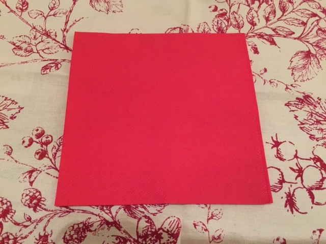 Take your regular napkin from a pack and lay it flat. Most napkins will come out of the pack ready to go, but just in case yours isn’t, you’ll need to fold it into a square.