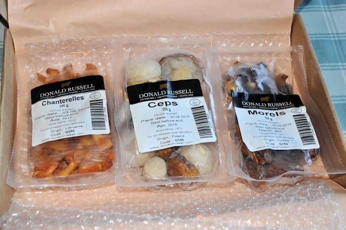 I had the pleasure of receiving a box of frozen gourmet fruit and some mushrooms, sent by the PR of a butcher, Donald Russell, to try. In the box, there were 300g packs of plums, dark sweet cherries, blueberries, apples and plums.
