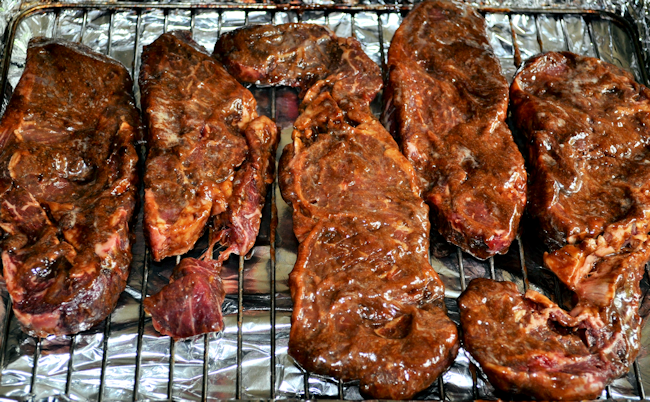 - Pop the steaks into the fridge for at least an hour, or overnight which would be even better.