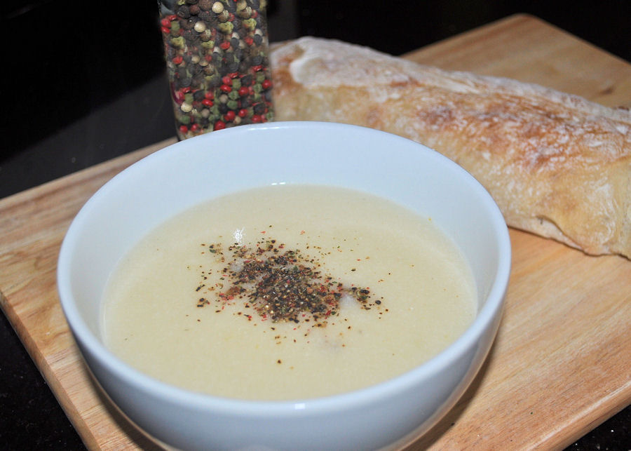 Fill the soup maker up to the maximum 1.6 litre line, put on the top and select smooth or chunky. The smooth version will take 21 minutes to fully cook.