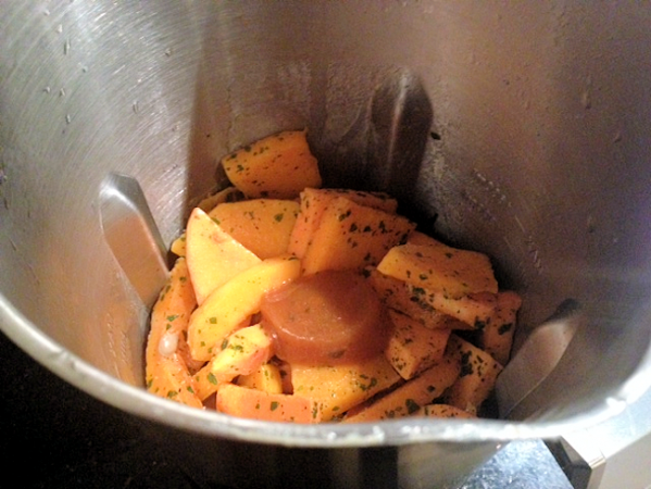 I put the veg in the machine, made a mental note of how much veg I needed to make 800g, added water to the maximum level and set it to go. It seemed to be such a short time later, it beeped to say it was done. I hate to say it, but the end results were actually better than my regular soups. Perhaps I overcook mine normally.